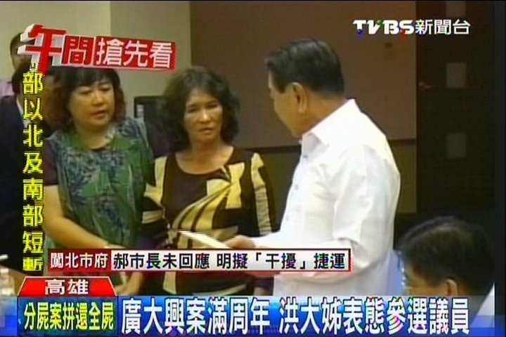 廣大興案將屆滿一年,洪慈綪宣布參選經神明指示在下午二時,日子也別具意義。